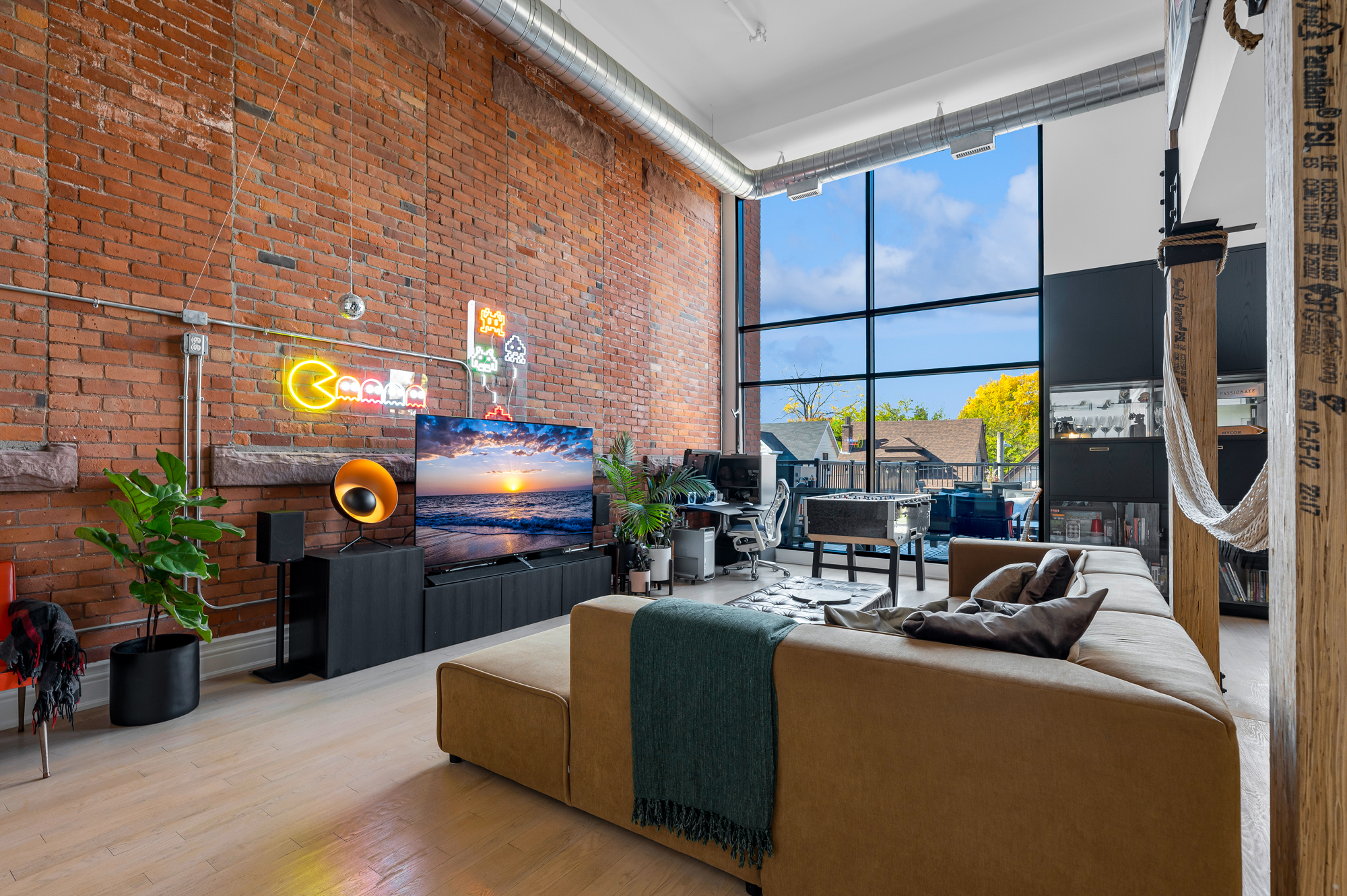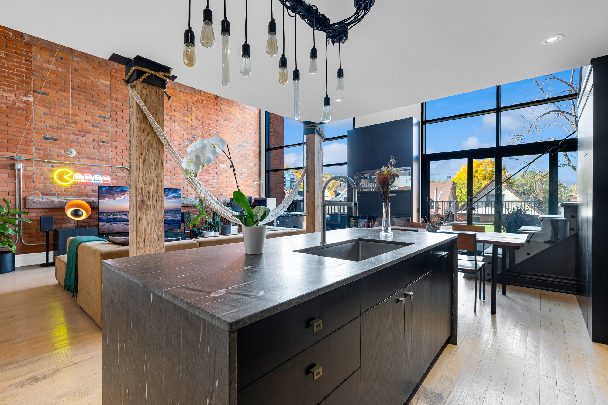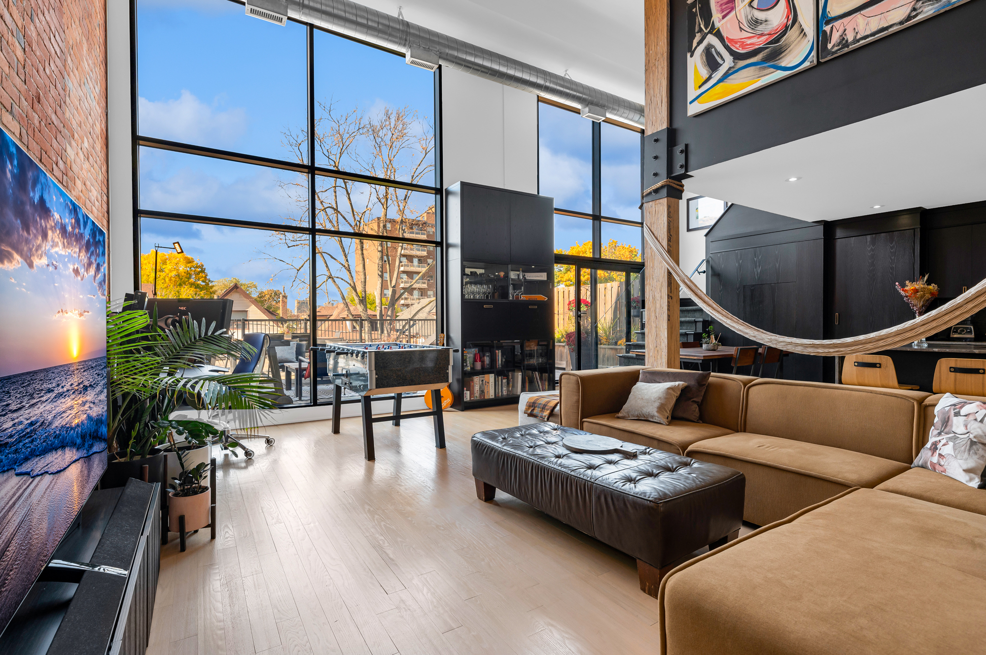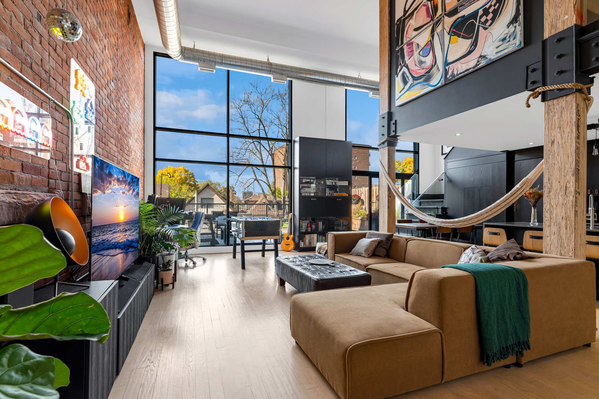 Designed by professional designer, every inch of this home showcases thoughtful craftsmanship and bespoke finishes. Soaring 17-foot ceilings, floor-to-ceiling Reynaers windows, exposed brick walls, PSL engineered posts with industrial hardware, and custom lighting throughout set the stage for a dramatic and inviting living experience.