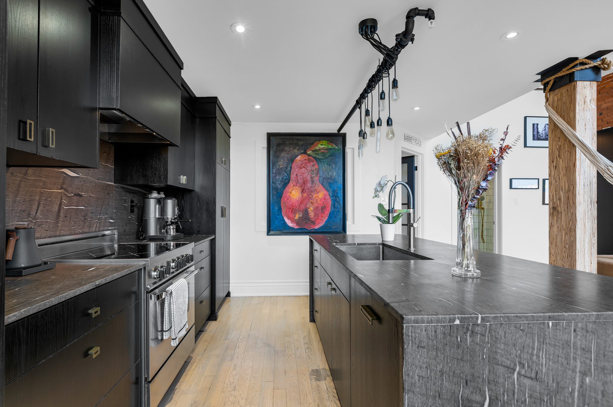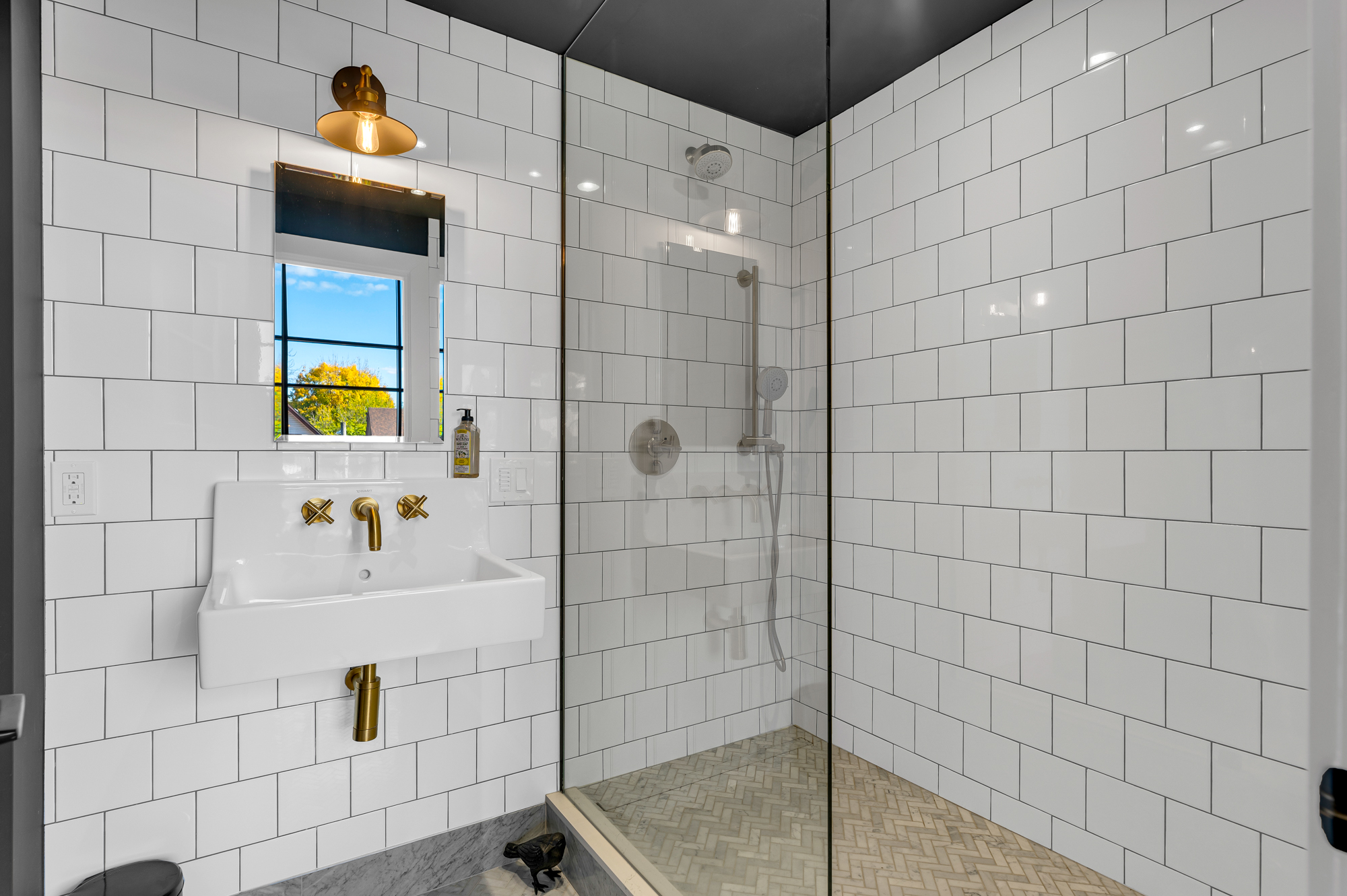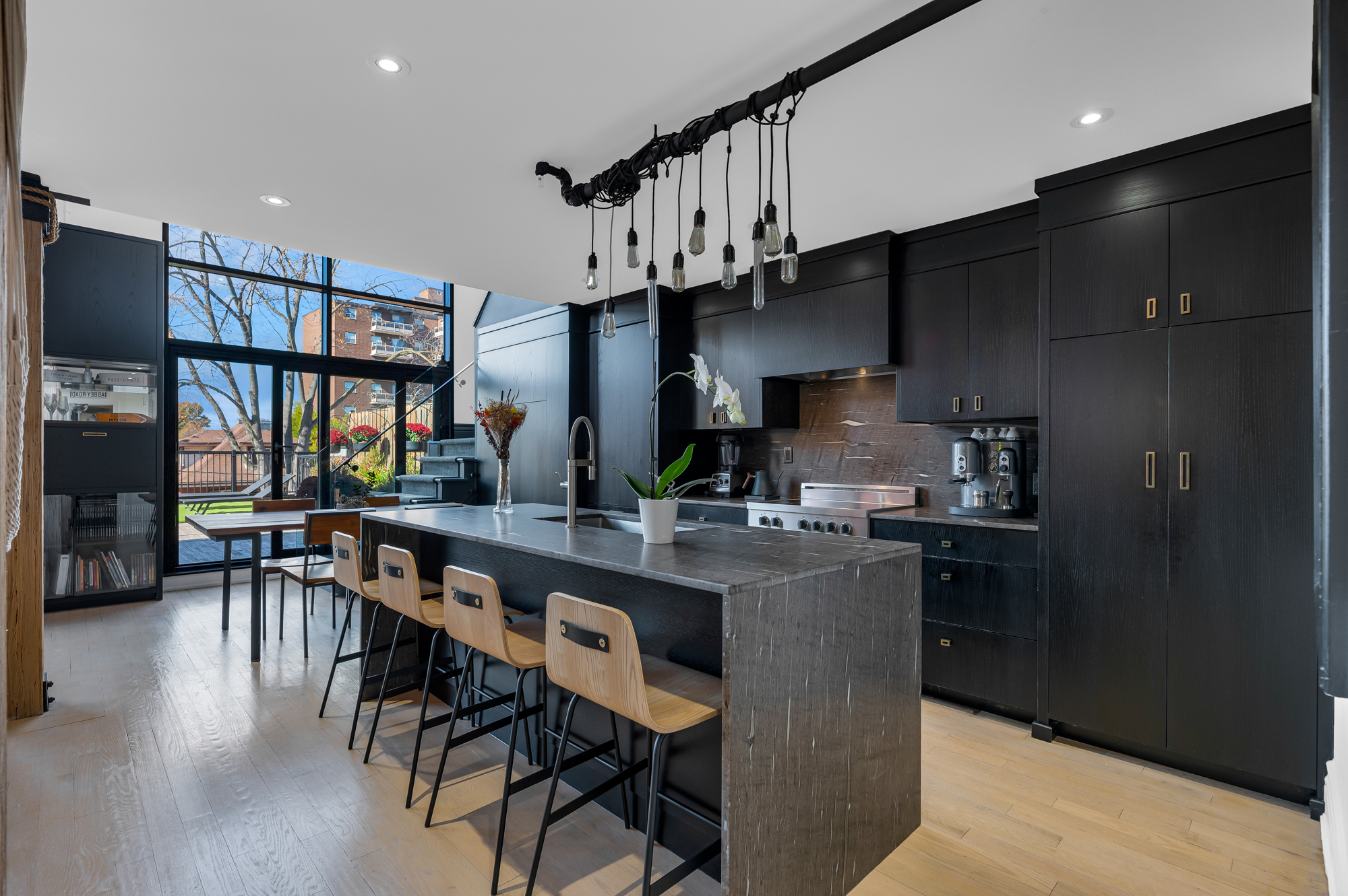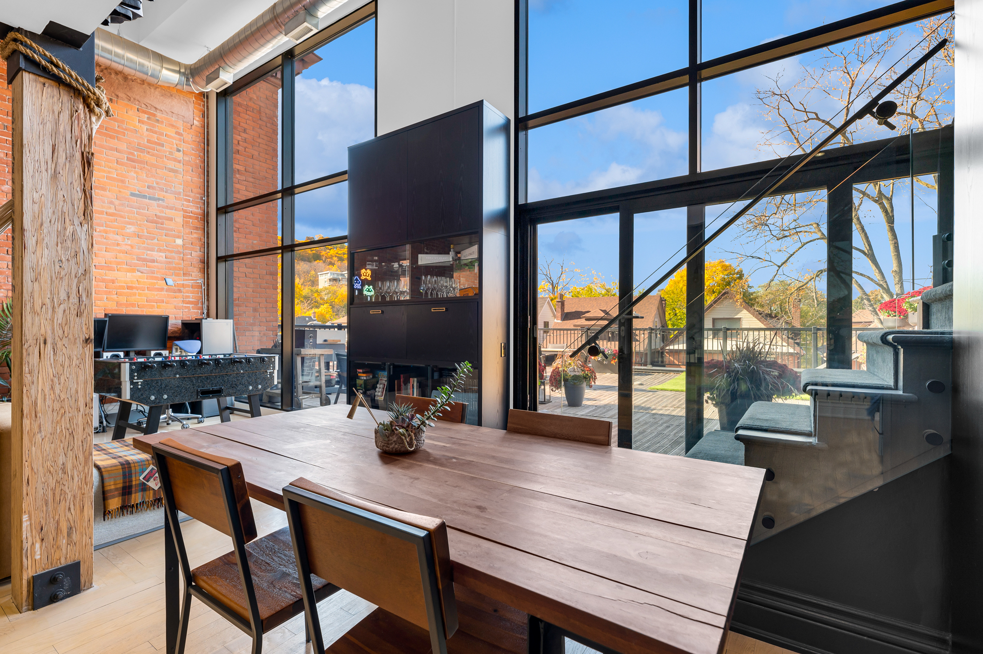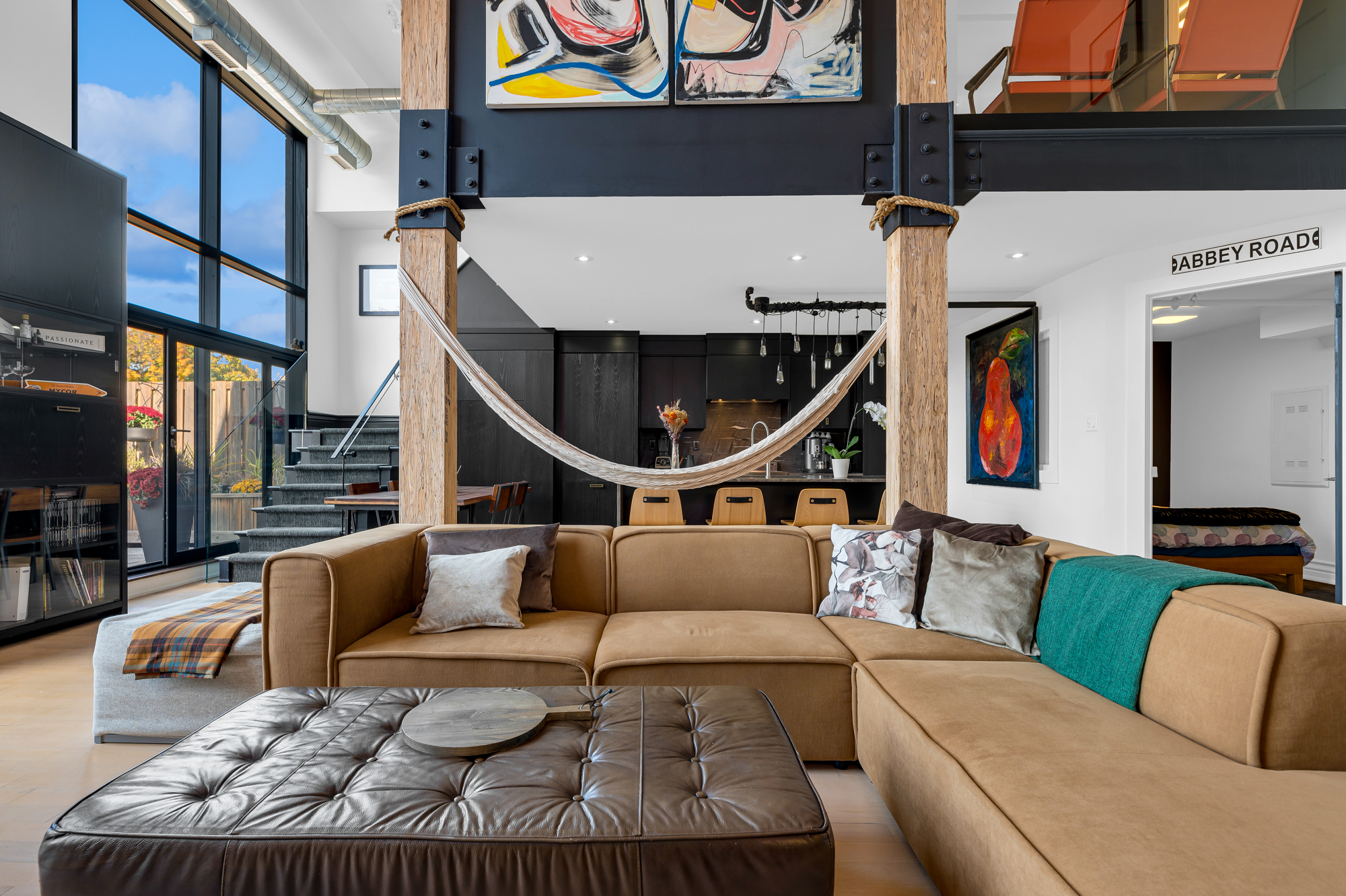 Designed by professional designer, every inch of this home showcases thoughtful craftsmanship and bespoke finishes. Soaring 17-foot ceilings, floor-to-ceiling Reynaers windows, exposed brick walls, PSL engineered posts with industrial hardware, and custom lighting throughout set the stage for a dramatic and inviting living experience.